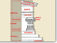 Whereas the Doric column is a purely Greek creation, the Ionic one apparently assumed foreign elements and adapted them. The earliest Ionic columns also lead to that conclusion; they have been found in Lesbos and Troas, and thus are called Aeolic. The Aeolic columns have two volutes, among which a palmette is developed, and at their base there usually is a floral pattern. The differences between Ionic and Doric order are also apparent in the architrave, which is not unified, but is divided into three successive and protruded mutule. In Ionia, over the architrave we meet a decorative area with a Lesbian kyma and supports of the cornice, which are called dentils. On the islands and Attica the use of the frieze with relief and sometimes painted representations prevailed. | ![]() |