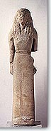 The Daedalic style is mainly decorative. That is to say the forms follow Geometric standards, although the angular elements are more rounded, the sizes are closer to reality and the exaggerations in the size of facial characteristics are abandoned. However, a truly realistic representaion has not yet developed, nor an improvement in anatomical accuracy. The Daedalic style is discerned for the conservative conception of its form and the exceptionally slow rate of its development. |