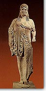 In Attica the kouroi were widely spread as a grave markers. Of them the earliest ones, such as the head of Dipylon and the kouros of Sounion, still belong to the end of the 7th or at the beginning of the | ![]() |