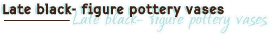 Many kylix painters repeat trivial motifs, such as the gorgoneia and composite animals. The eye kylikes are widely spread and sometimes are influenced by the "Chalcidian" standards of the west. Im the final black-figure vases is included the multitudinous series of the vases known as the lekythoi. Although these forms become less and less attentive, their motifs are schematically formed and their production is almost massive, the black-figure lekythoi continuing to be produced until the second quarter of the |