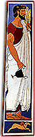 Cimon owed a lot to the achievements of the slightly senior Eumarus from Athens. And it is true that the only examples of painting that we know of, from outside the Corinthian influence, come from Athens. There is a clay metope from Acropolis with a representation of a hoplitodromus (around 500 B.C.) and some grave stelae from the last quarter of the 6th century B.C. The most important is that of Lyceas, of which unfortunately the colours have today been lost. We can also have some idea about the works of the end of the Archaic period from the paintings that decorate the grave monuments in Elmali in Lycia and in Poseidonia in Italy. |