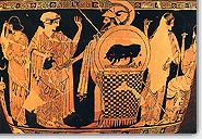 In the religious perception of the ancient Greeks, gods were benefactors, but at the same time they demanded gifts. The most elementary form of gift was the offering of one part of whatever the man acquired, that is food. They offered, in fact, the first piece of food that was obtained by hunting, fishing, harvest or agriculture, and was called aparchai. The method of offering the food to god was not always the same, or necessarily logical. It could be placed on special offering tables in the temples and then end up with the priests for their own needs. It often composed a broth, which was later given to strangers and pilgrims by the priests. The food was even left at sacred points for other people or even for animals. Finally it could either be burnt on the altar, or be immersed into lakes, springs or the sea. To rural sanctuaries were dedicated the seasonal gifts (orae), which were called Horae, and was usually bread, figs, grapes, olives, wine and milk. In certain cases the percentage of the product that should be dedicated was defined in 1/10 of the production and this offer was called dekate (tithe). The act of the offer, although it was known to us from earlier times, it seems that was systemized during the Archaic period and reflects both the desire of display and the clear seperation of the prosperous classes. | ![]() |