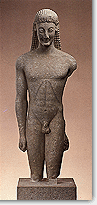 The offer of aparchai -while not abandoned- gradually acquired a second form, when money was offered instead of fruits, but it was still called aparchai. The amount, the kind and the way of the offer were often predefined, in which case it became known as 'tama', votive offering. In the case of an emergency or danger the people promised a specific offering through the formula "if... then...". The weather conditions that would have allowed a good crop were often the object of the invocations and offerings to the gods. Very expensive votive offers were made after military conflicts. Hence, many eminent weapons -especially in the Archaic period- decorate the sanctuaries, since the decate (1/10) of booties was designated for a dedication for the god. The golden tripod on a snake column that was dedicated to Delphi after the victory in Plateae was such a dedication. Even a number of the captives could be dedicated to the sanctuaries. However, the most common votive offerings were objects made especially for this purpose, as for example figurines, vases and statues. These works were accompanied, as a rule, by inscriptions, on which the name of their dedicator and/or artist is mentioned. Thus, one more function of the oblations becomes clear: personal recognition and acknowledgment through the constantly developing social rivalry. | ![]() |