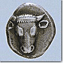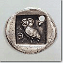 The heraldic coins -called that way, because most scholars believe that they are related to the emblems of important families- are rare, because their series were of a limited issue. Very few times they were found outside Attica, probably because they were used mostly in local marketplaces. They are mostly didrachms and applied the Euboic standard, that is they weighed 8,5 grams approximately. They had as emblems various, though indiscernible types, such as the amphora, the glaux (i.e. owl), the horsehead, the wheel, the astragalos, the bucranium (bull's head). Yet, later, they were replaced by distinguishable national figures -such as Athena and her sacred symbol, the owl- and validated with the inscription ΑΘΕ (Athe), meaning "of Athenians", aiming at the spread of the Athenian coinage to foreign markets. |