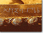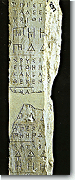 The numerical system we know from antiquity made its appearance for the first time in inscriptions of the 5th century B.C., but was obviously formed during the Archaic period. This system is based on a method of writing that was known in Assyria and Phoenicia, and is called acrophonic. That is, the number was written with the first letter of the word that indicated it: Π for pente, D for deka, H for hekaton, X for chilia, and M for myriads (tens of thousands). The units were shown with a vertical bar. Multiples of these numbers were indicated by repeating them and by inscribing the letter in question between the horns of the letter Π (when it was a question of a multiple of five): . Thus the number 1998 would have been written . This system was replaced in the first Imperial years with the alphabetic, the use of which continued into the Byzantine period.