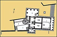 The top of the walls and columns was embellished not only with a frieze but with elaborate plant patterns; and so were the windows (perithyron). The architectural detail was frequently picked out in colour: red, blue, gold. The north and south entrances still have their original marble coffered ceilings.