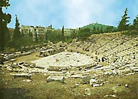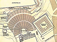 Pericles' Odeon, on the south slope of the Acropolis. Probably built between 447 and 442, it had nine rows of ten columns, and, along the whole length of the walls, wooden