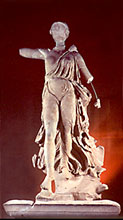 Sculptures from the last twenty years of the 5th century are particularly interesting as regards body structure, costume, and elaborate treatment of dress folds. The figures become more ethereal. They start to twist on a central axis. Little by little the female body comes out of hiding, with a gentle, elegant look. These are the features that typify the so-called Rich style: mostly they appear in sculptures by Phidias' pupils.