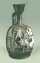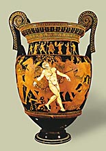 ![]() | Of the many potters working in this period we can single out for mention Xenophantus (who signs himself 'Athenian'). It was he who decorated a large squat lekythos from Kerch with figures in bas-relief. This use of relief on pots is obviously inspired by the metal vessels with repousse work that were so fashionable at this time. The Kerch style. Some fifty years before Attic red-figure pottery came to an end, a style that has been named after the Crimean city of Kerch made its debut. Kerch is the classical Panticapaeum, and many pots of this type have been discovered there. (The Kerch style died with red-figure pottery itself). The shapes most commonly found are the pelike, the lekanis, the lebes gamikos, and the krater. As for the subjects, they generally have to do with mythological beings popular among the peoples of the Black Sea: for instance, griffins, Arimaspians, and Amazons. |