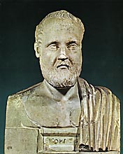 Others of his speeches show Isocrates' preference for monarchy. he believed that only a sole ruler could unite the Hellenes, and the ideal such ruler he found in Philip of Macedon. In one of his speeches - Philip - and in three of his letters, he calls on the king of Macedon to lead a campaign of Hellenes, united under him, against Persia - a position which set Isokrates at loggerheads with Demosthenes. In his last work - the Panathenaicus - Isocrates, who now had actual experience of Philip - arrived at the view that the best constitution is a synthesis of the three types: monarchy, oligarchy and democracy. This is a view reminiscent of Aristotle, although the two men did not get on together at all.