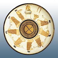 In Attic iconography (mainly on pots but also in reliefs and statues), there are many scenes of music. Portrayals of male and female musicians, or of music teaching in school, have much to tell us about the way instruments were played, and about their shape and evolution. The pipe [aulos], to take one example, was very popular in fifth-century Athens, having originally been associated principally with grave rituals. In the following century it was played by professional musicians, amongst them male pipers and girl-pipers. Fourth-century Attic pots show women playing the harp or the drum, mainly in religious rites.