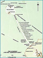 The earliest public graves that have been found to date lie in a line parallel with the Themistoclean walls, from which they were separated by the Processional Way. They were covered over after the end of the Peloponnesian War, and district was later rebuilt. It was at this time that the public graves started to take over, not only the north and south sides of the outwork built parallel with the Themistoclean walls in the second half of the fifth century B.C., but also at points on both sides of the road to the Academy and the Thriasian Gate. The earliest public grave yet excavated that can be identified with certainty, the Grave of the Lakedaimonians, dates to 404/3 B.C., but Pausanias gives us a catalogue of the monuments - twenty in all - to men killed in battle during the fifth century B.C.